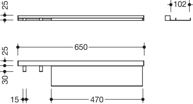 HEWI Wandprofil pulverbeschichtet, mit Ablage, 650 mm, schwarz tiefmatt