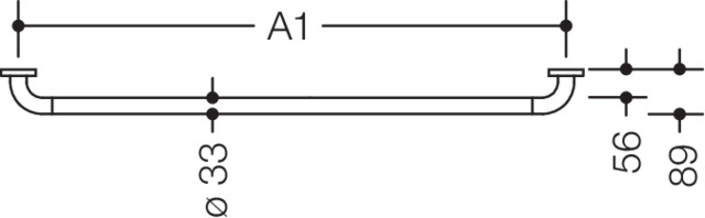 an den Enden im rechten Winkel abgebogene Stange, Montage an der Wand mit Befestigungsmaterial, 90 mm tief, Stange ø 33 mm, Rosetten ø 70 mm, aus Polyamid, mit antimikrobiell wirksamem Mikrosilber