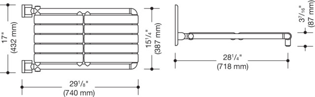 HEWI Wannenklappsitz (ADA), Polyamid, hochglänzend, Breite 387 mm, Tiefe 740 mm, in HEWI Farbe 92 (Anthrazitgrau)