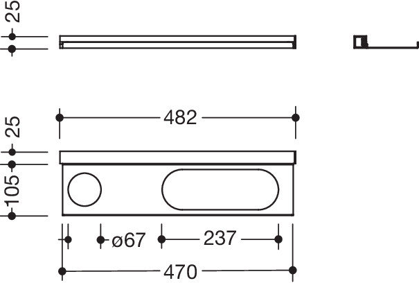 HEWI Waschtischprofil 470mm, mit Ablage 360x102mm, schwarz tiefmatt, Loch rechts K10283169