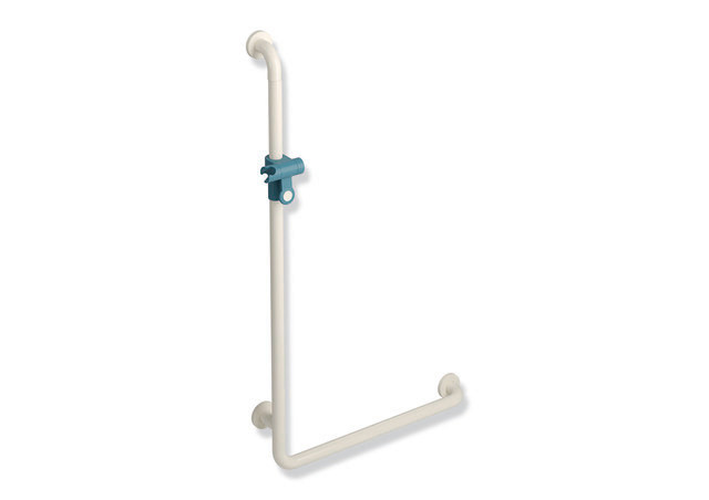 HEWI Winkelgriff 801 reinweiß/aquablau, mit Brausehalter, 600x1100mm, Polyamid matt K20586607