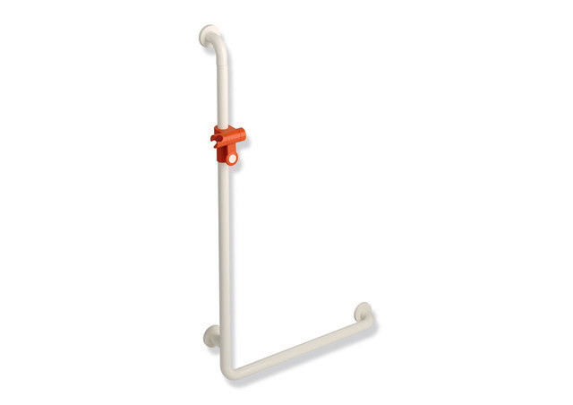 HEWI Winkelgriff 801 reinweiß/koralle, mit Brausehalter, 600x1100mm, Polyamid matt