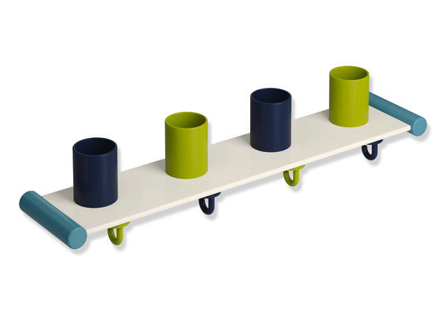 HEWI Zahnputzbecherleiste mit Handtuchhaken, matt, 4 Plätze, apfelgrün K20586731