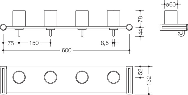 HEWI Zahnputzbecherleiste mit Handtuchhaken, matt, 4 Plätze, aquablau