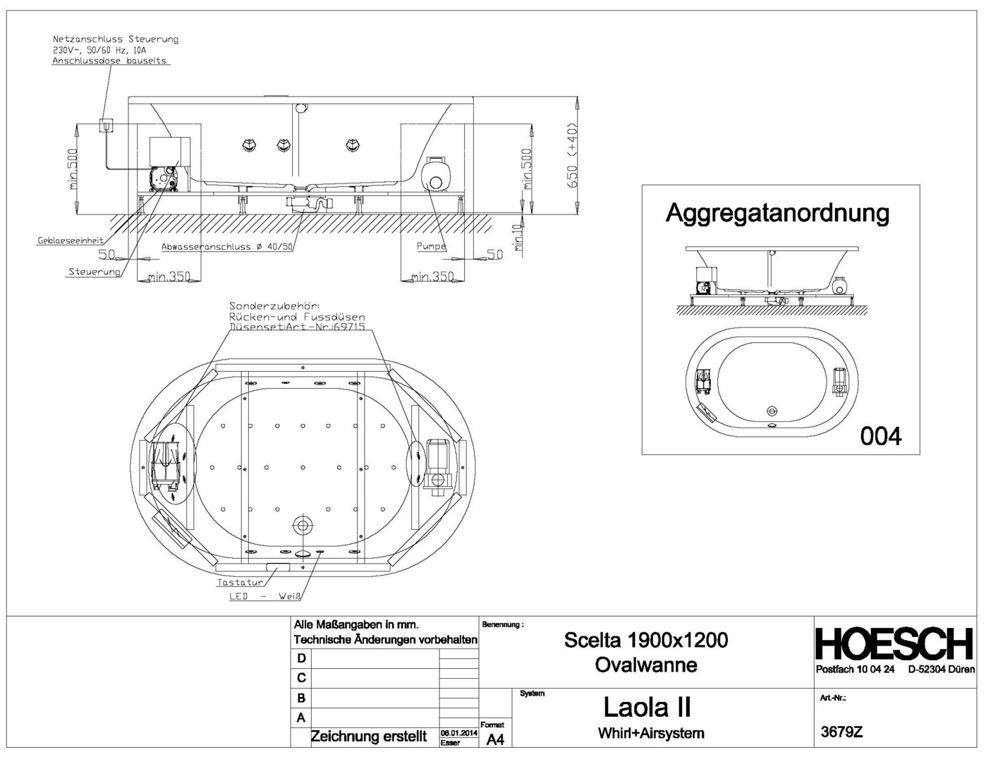 HO Whirlwanne Scelta Oval 1900x1200 mit System Laola II Whirl+Air Weiß/Chrom/Motor rechts/links