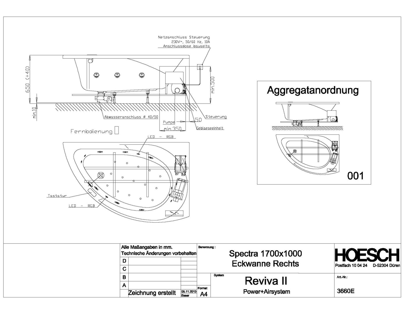 HO Whirlwanne Spectra Eck 1700x1000 rechts mit System Reviva II Power+ Air, Weiß/Chrom/Motor rechts