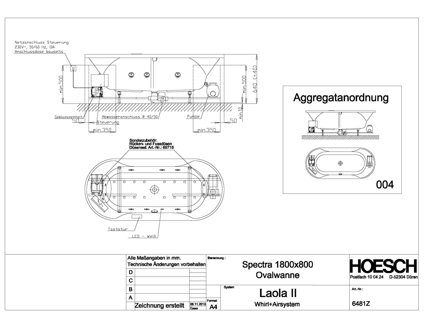 HO Whirlwanne Spectra Oval 1800x800 mit System Laola II Whirl+Air Weiß/Chrom/Motor rechts/links
