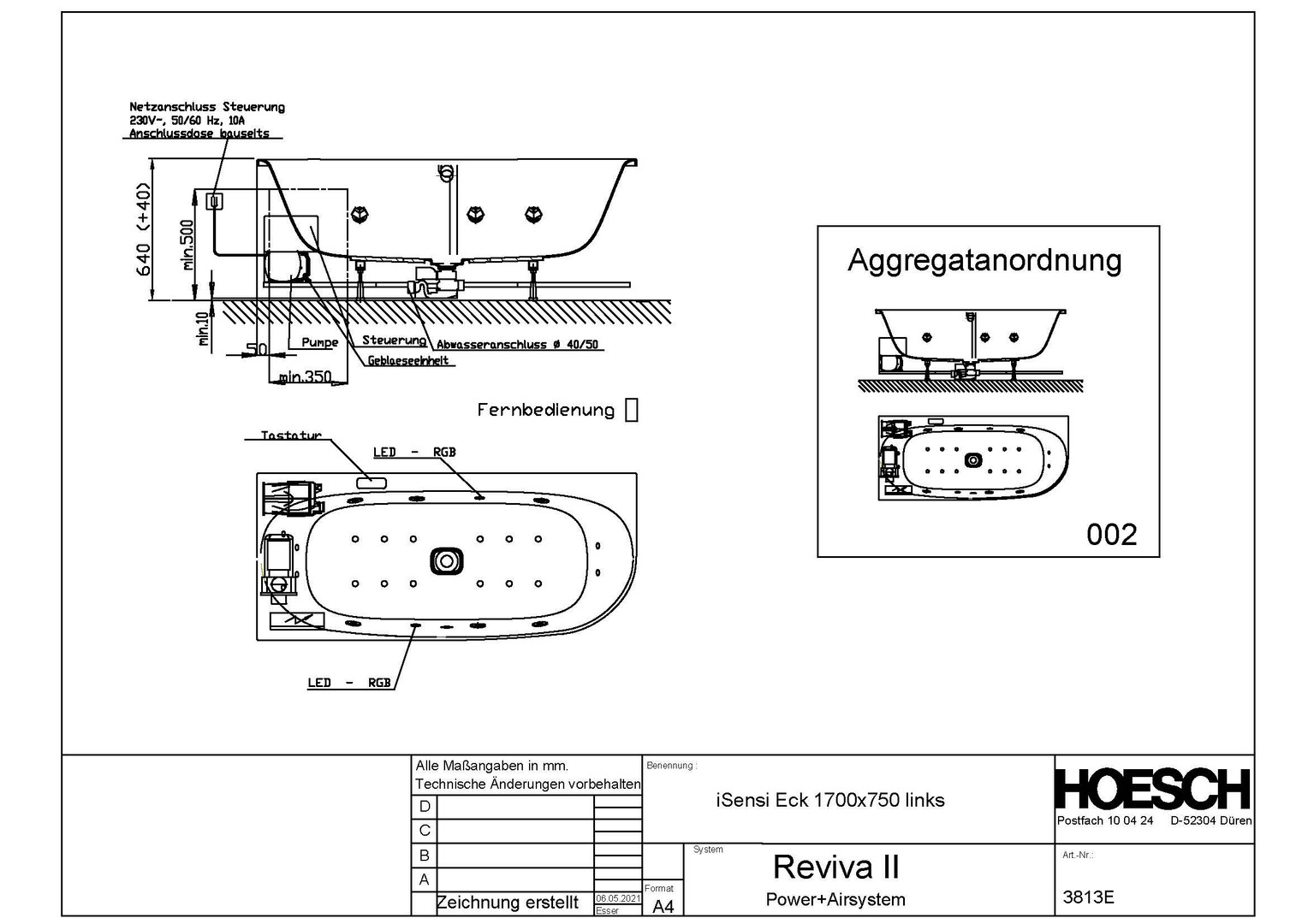 HO Whirlwanne iSensi Eck 1700x750 links mit System Reviva II, weiß/verchromt/Motor links