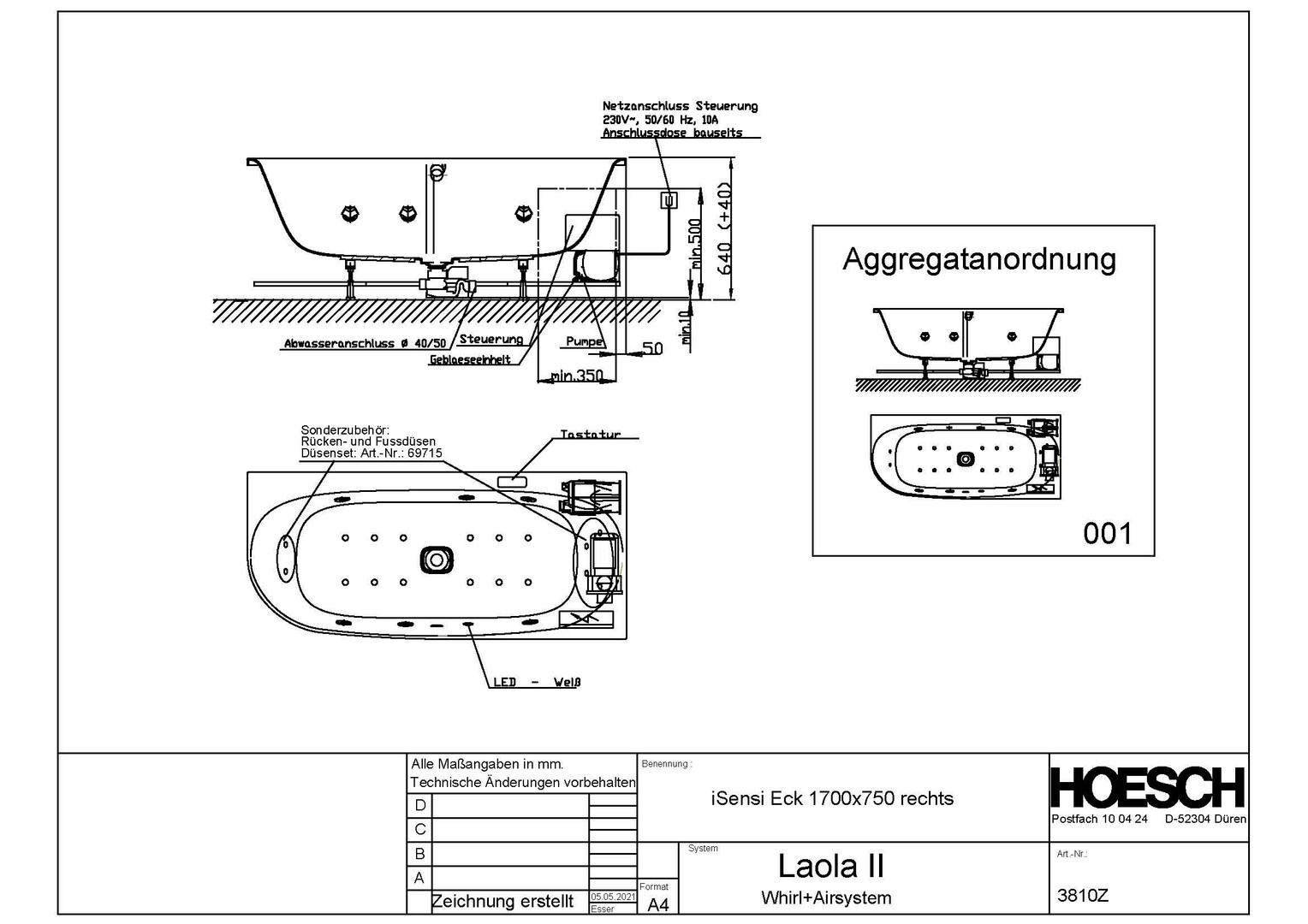 HO Whirlwanne iSensi Eck 1700x750 rechts mit System Laola II, weiß/verchromt/Motor rechts