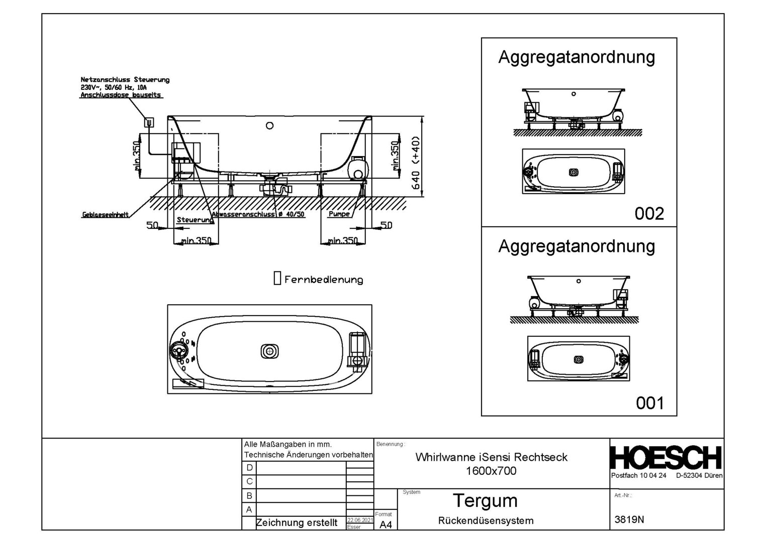 HO Whirlwanne iSensi Rechteck 1600x700 mit System Tergum, weiß/verchromt/Motor rechts