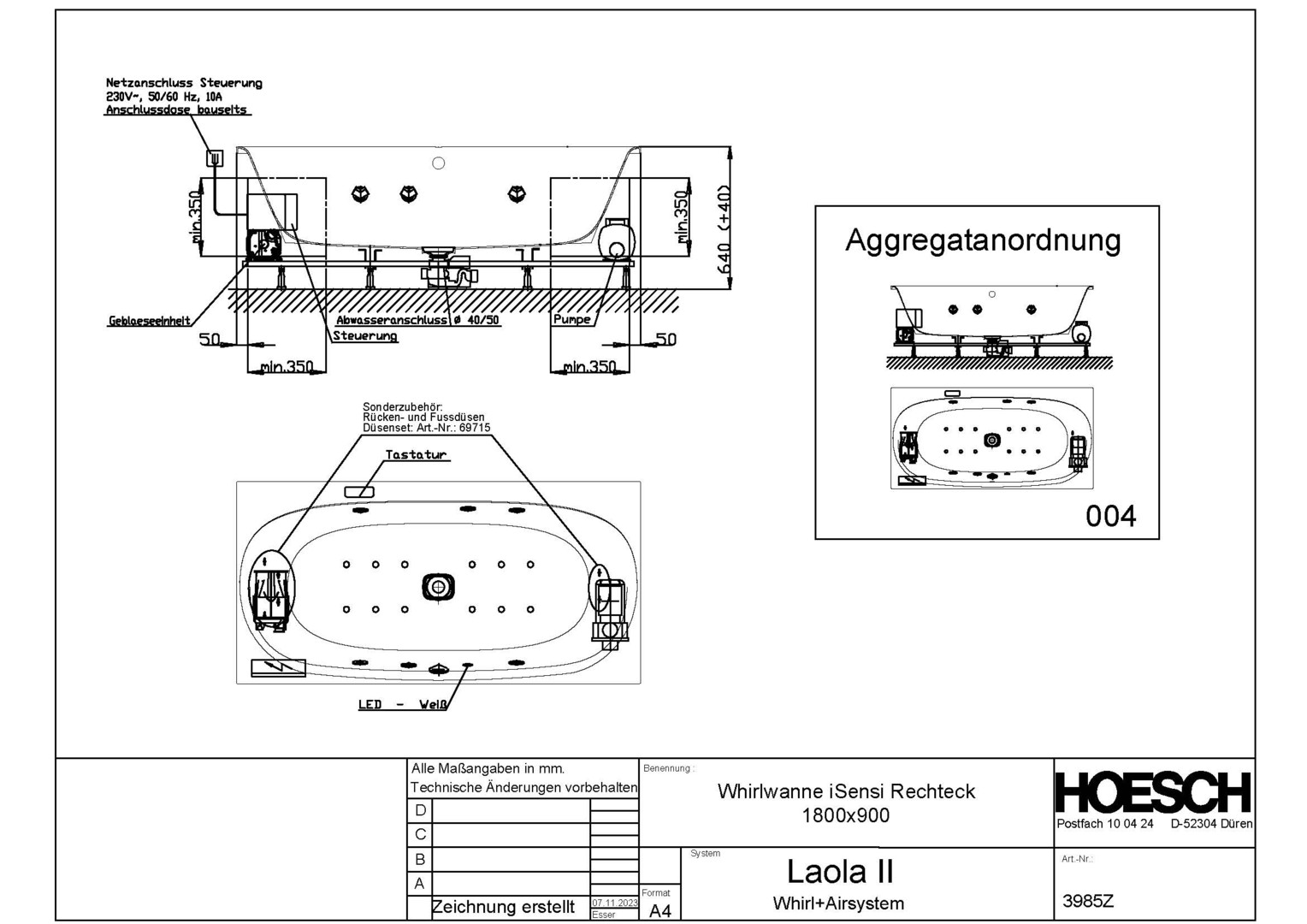 HO Whirlwanne iSensi Rechteck 1800x900 mit System Laola II, weiß/verchromt/Motor rechts/links