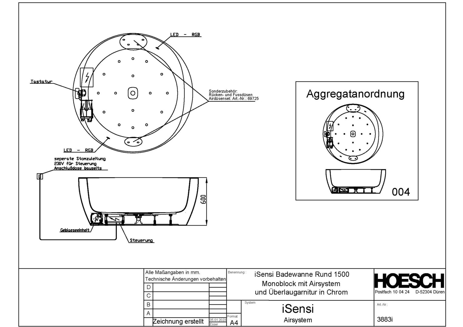 | Bedienung | Elektronisch auf dem Wannenrand |