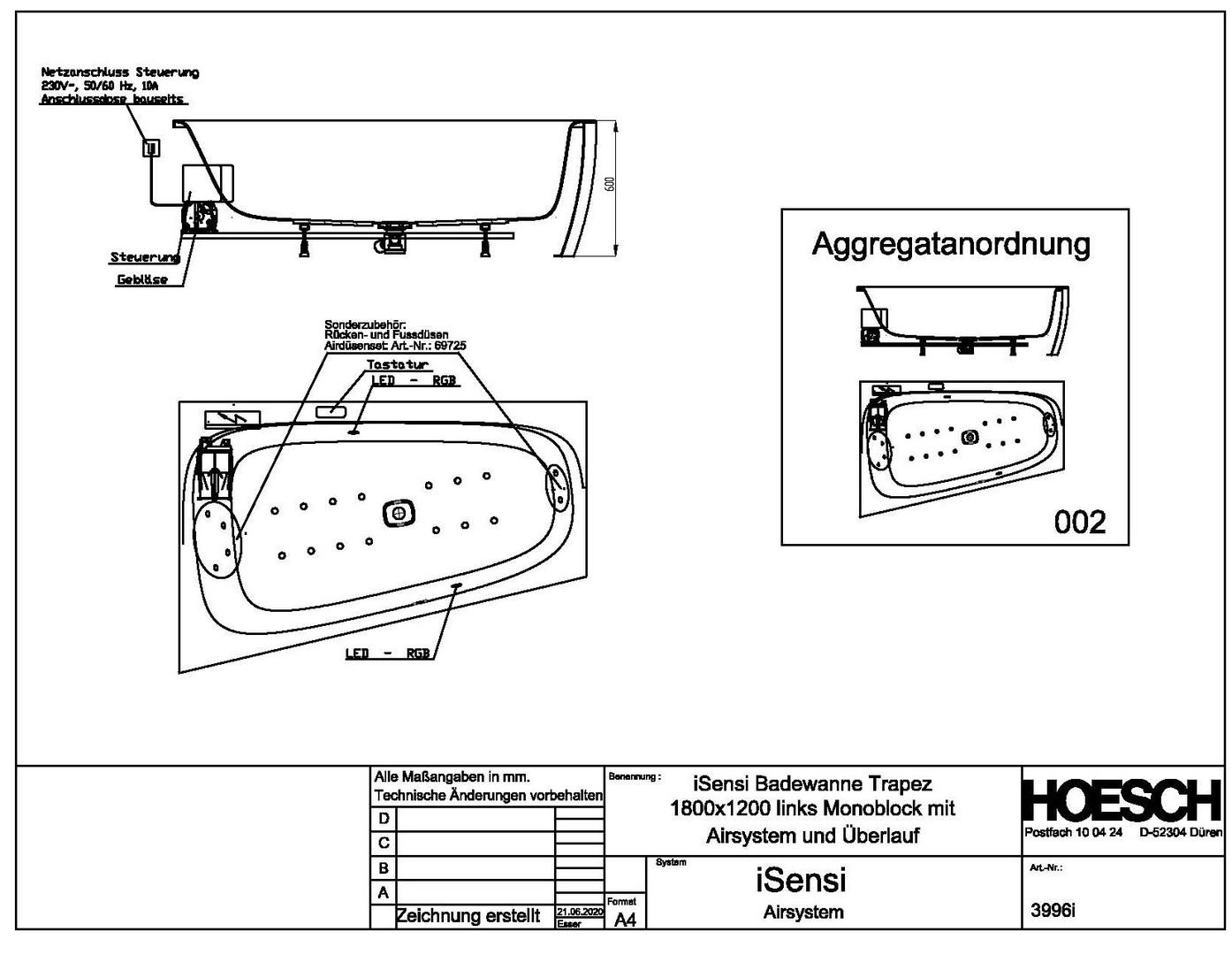 | Bedienung | Elektronisch auf dem Wannenrand |