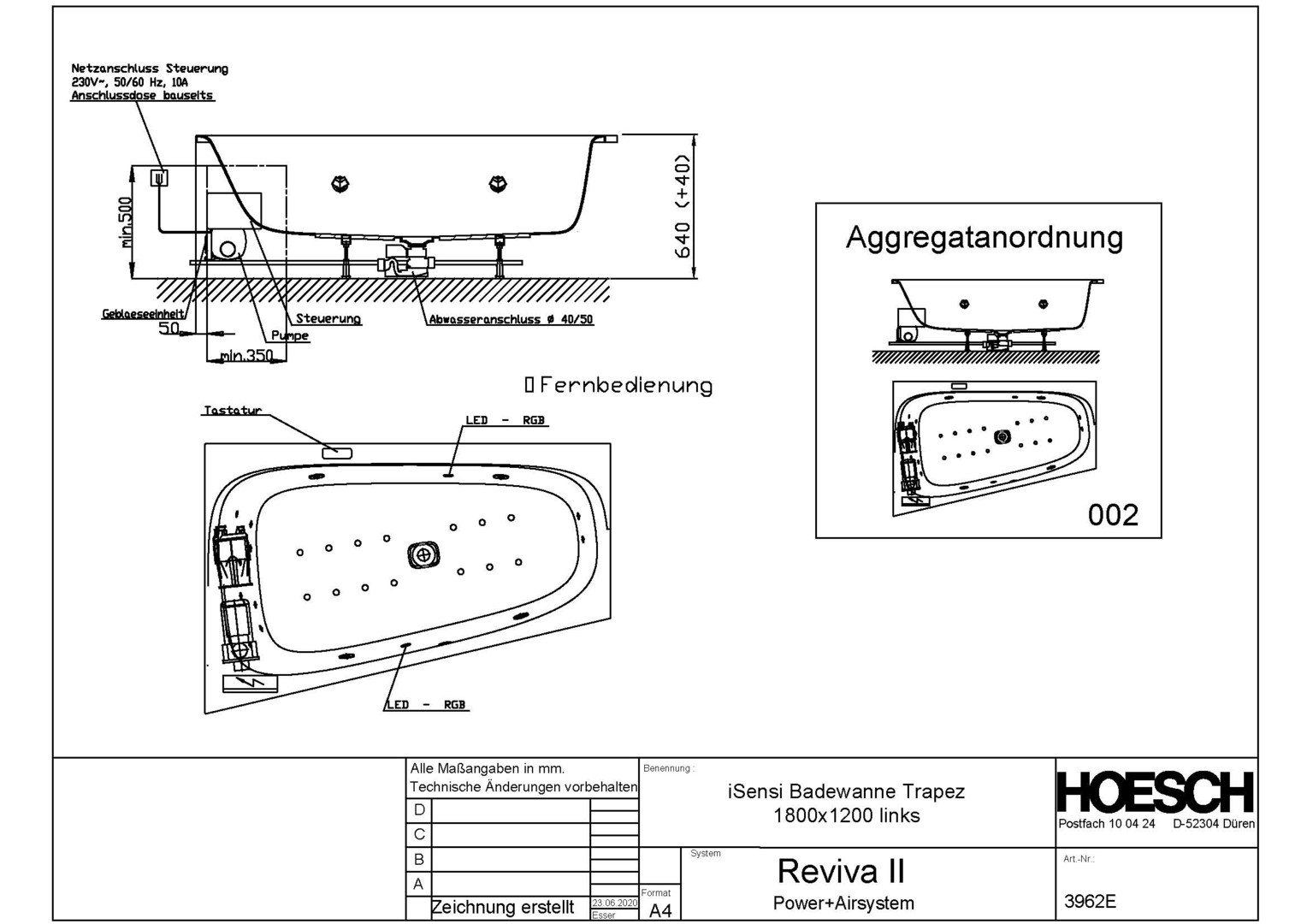 HO Whirlwanne iSensi Trapez 1800x1200 links mit System Reviva II, weiß/verchromt/Motor links