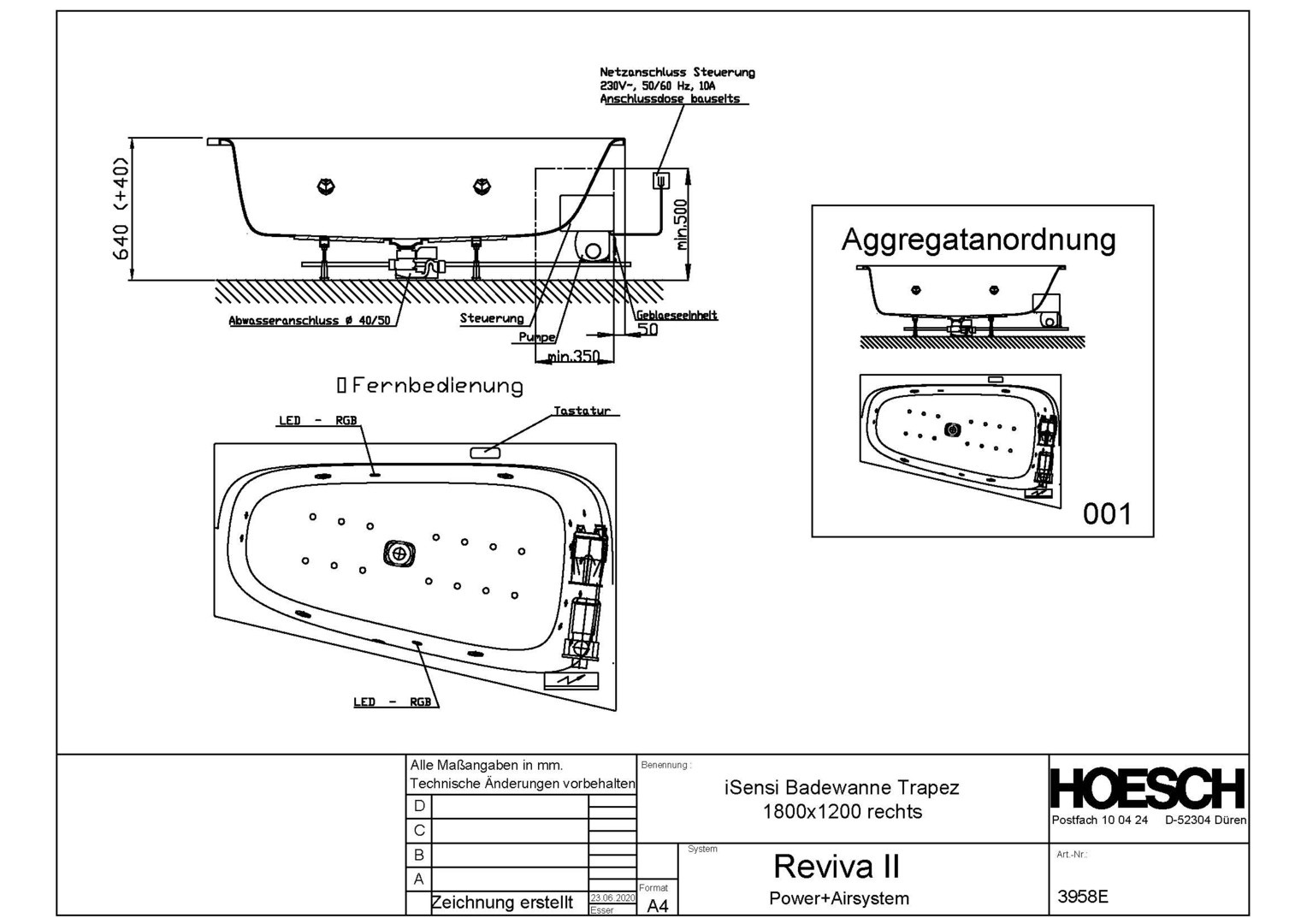 HO Whirlwanne iSensi Trapez 1800x1200 rechts mit System Reviva II, weiß/verchromt/Motor rechts