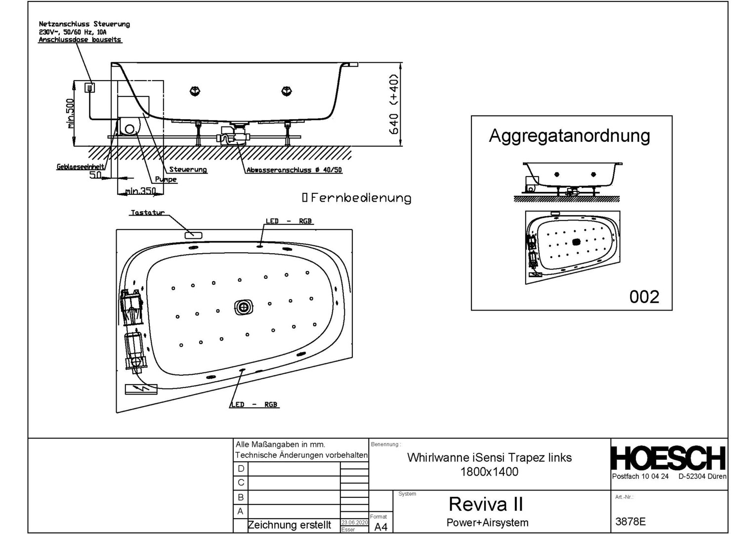 HO Whirlwanne iSensi Trapez 1800x1400 links mit System Reviva II, weiß/verchromt/Motor links