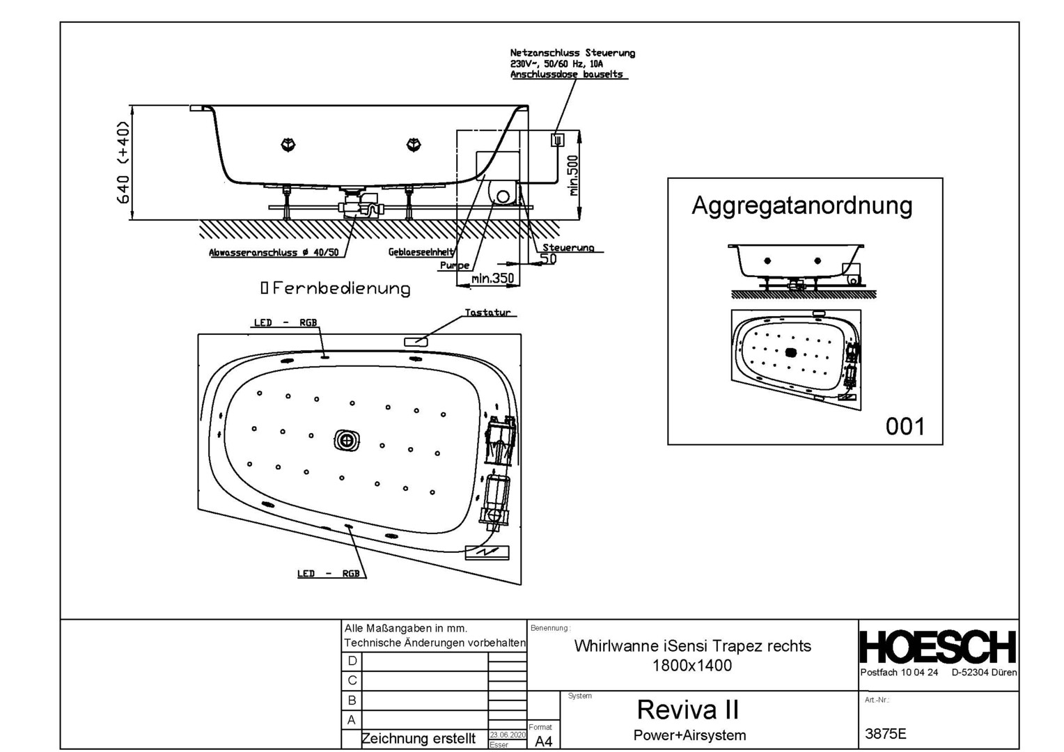 HO Whirlwanne iSensi Trapez 1800x1400 rechts mit System Reviva II, weiß/verchromt/Motor rechts