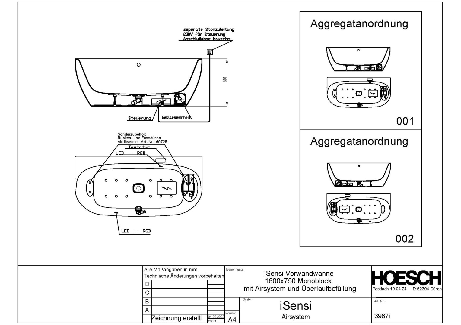 | Bedienung | Elektronisch auf dem Wannenrand |
