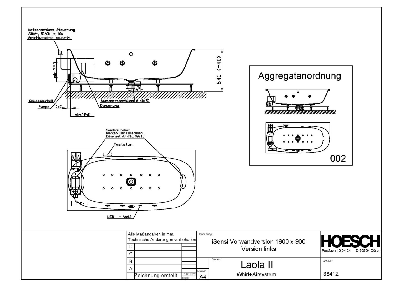 | Bedienung | Elektronisch auf dem Wannenrand |