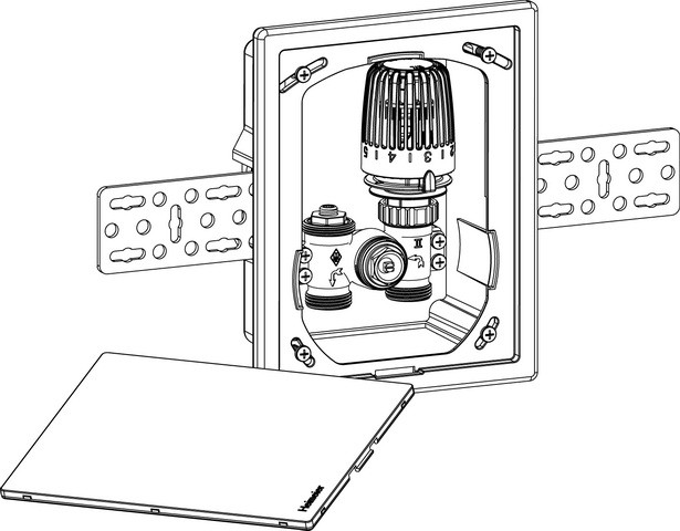 Unterputz-Einzelraumregelung mit geschlossener Abdeckplatte, Maximalbegrenzung der Rücklauftemperatur, Voreinstellung, Absperrung und Entlüftung, für Fußbodenheizungen, Wandheizungen, kombinierte Fußboden-Radiatorheizungsanlagen, Gehäuse DN 15, die Bautiefe des UP-Kasten beträgt 60 mm, flexibler Einbau durch variablen Abstand zwischen UP-Kasten und Abdeckung von bis zu 30 mm, die Abdeckung kann einen schrägen Einbau des UP-Kasten bis zu 6° je Seite ausgleichen, Nenndruck PN 10, Rücklauftemperaturbegrenzer RTL 0-50 °C, max. Betriebstemperatur 90 °C, min. Betriebstemperatur 2 °C, es ist für alle Multibox-Ausführungen zu berücksichtigen, dass die von der Anlage gefahrene Vorlauftemperatur für den Systemaufbau der Fußbodenheizung geeignet ist, Ventilgehäuse korrosionsbeständiger Rotguss, Niro-Stahlspindel mit doppelter O-Ring-Abdichtung, der äußere O-Ring ist unter Druck auswechselbar, Kunststoffelemente aus ABS und PA, Rücklauftemperaturbegrenzer (RTL) mit dehnstoffgefülltem Thermostat, Abdeckung in weiß RAL 9016, Durchflussrichtungspfeile, Anschluss G 3/4 mit Konus passend für Klemmverschraubungen für Kunststoff-, Kupfer-, Präzisionsstahl- und Verbundrohr