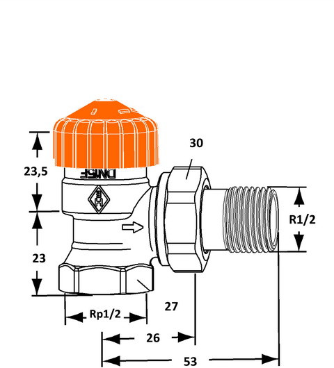 mit automatischer Durchflussregelung auf den eingestellten Wert, Absperren, KEYMARK-zertifiziert, geprüft nach DIN EN 215, Temperaturregelung, Dimensionen DN 10-20, Nenndruck PN 10, Gehäuse aus korrosionsbeständigem Rotguss, Ventilgehäuse und Anschlussverschraubung vernickelt, mit Niro-Stahlspindel und doppelter O-Ring-Abdichtung, der Durchfluss ist von 10 bis 150 l/h stufenlos einstellbar, der eingestellte Durchfluss wird nicht überschritten, das Ventil regelt den Durchfluss unabhängig vom Differenzdruck, das komplette Thermostat-Oberteil kann mit dem Montagegerät ohne Entleeren der Anlage ausgewechselt werden, Anschluss Innengewinde für Gewinderohr, oder in Verbindung mit Klemmverschraubungen an Kupfer- oder Präzisionsstahl, max. Betriebstemperatur 120 °C, mit Bauschutzkappe oder Stellantrieb 100 °C, min. Betriebstemperatur -10 °C, min. Differenzdruck 10-100 l/h: 10 kPa, 100-150 l/h: 15 kPa, max. Differenzdruck 60 kPa, Inbetriebnahme-Stellung max. Nenndurchfluss qmN bei 10 kPa nach EN 215: 110 l/h, SW1: DN 10/22 mm, DN 15/27 mm, DN 20/32 mm, SW2: DN 10/27 mm, DN 15/30 mm, DN 20/37 mm, Maß H1 DN 10/24 mm, DN 15/23,5 mm, DN 20/ 21,5 mm bei Auflagefläche Thermostat-Kopf oder Stellantrieb, nicht geeignet für Klemmverschraubungen für Verbundrohr