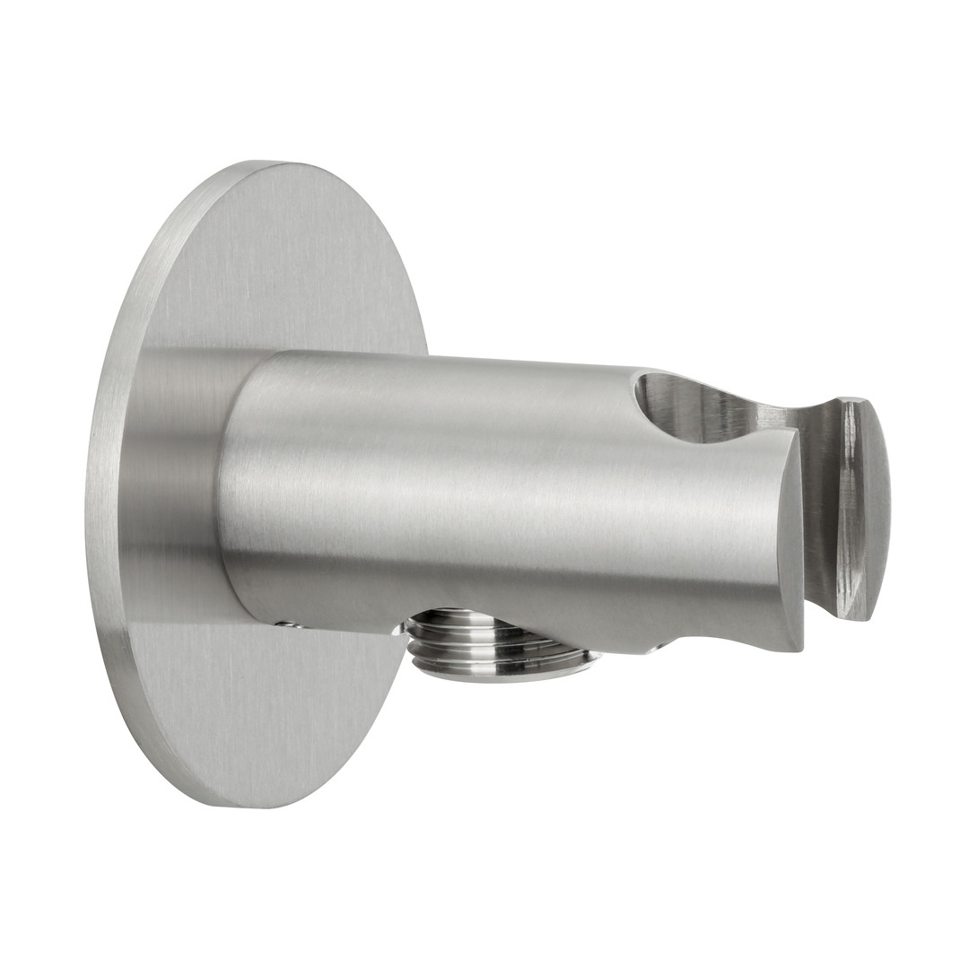 Herzbach Brauseanschlussbogen Living Spa seven round 1/2", Rosette d= 70mm, mit Konushalter, Edelstahl gebürstet
