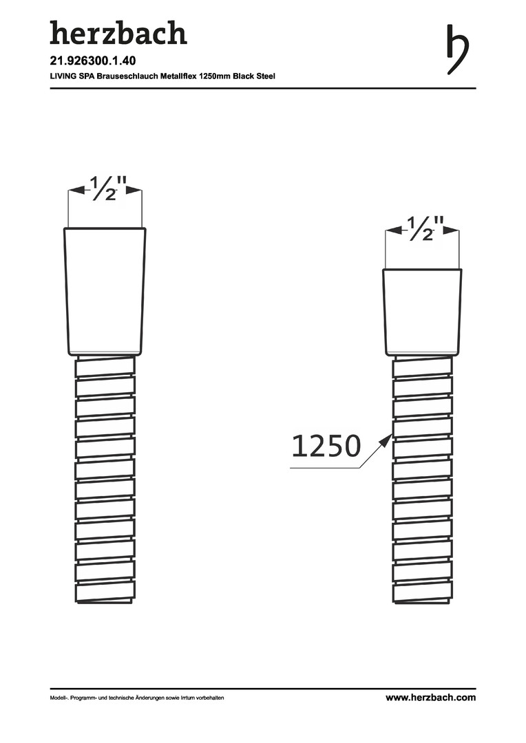 Herzbach Brauseschlauch Living Spa Brauseschlauch 1250 mm, black steel, Metallflex, 1/2"
