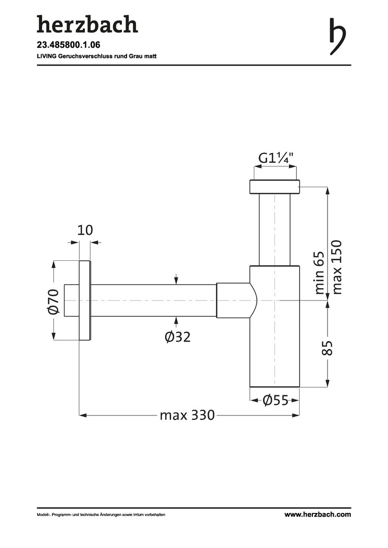 Herzbach Design-Geruchsverschluss Living 1 1/4", mit Reinigungsöffnung, grau matt