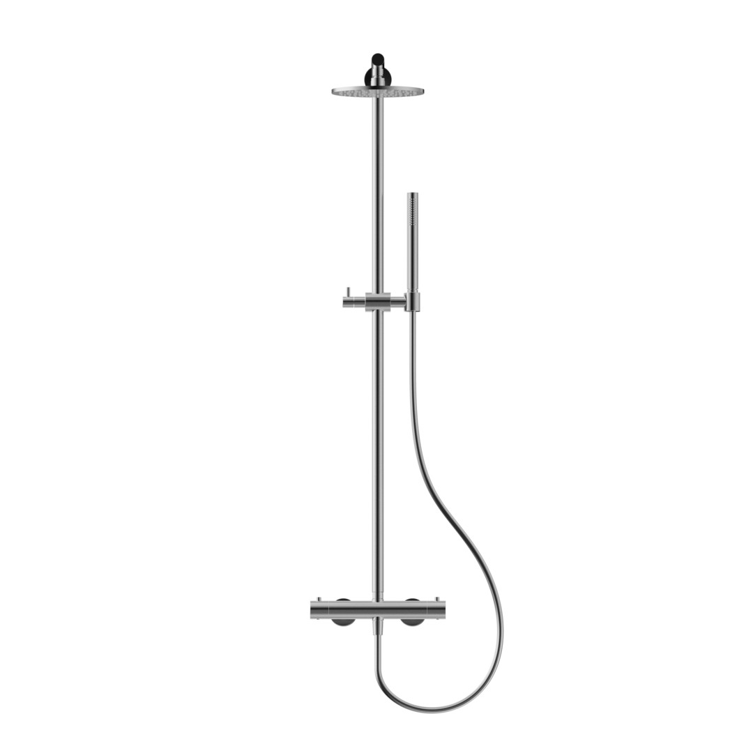Herzbach Duschsäule Living Spa Ø 200 mm, mit Brause-Thermostat und Stabbrause, Edelstahl gebürstet K11600753