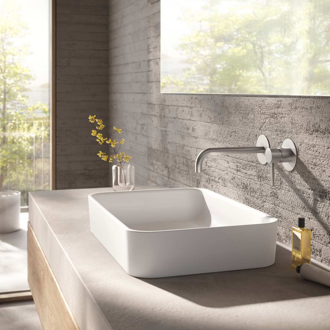 Auslauf- und Armaturenblende Ø 80 mm, LOGIC-SoftEmotion-Keramikkartusche, SSR-Perlator mit beweglicher Strahlscheibe, Auslauf kann wahlweise links, rechts, unten gesetzt werden (Rohmontage beachten)