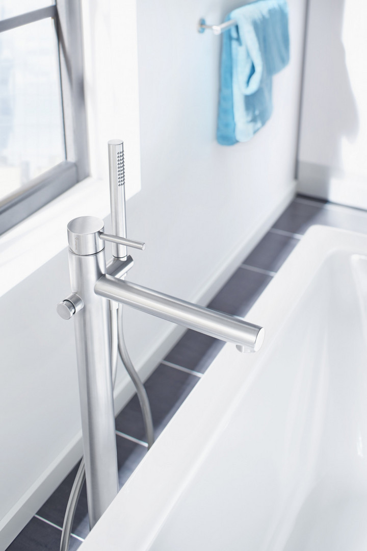 Herzbach Wannen-Einlaufsäule Deep Edelstahl gebürstet, bodenstehend K23718529