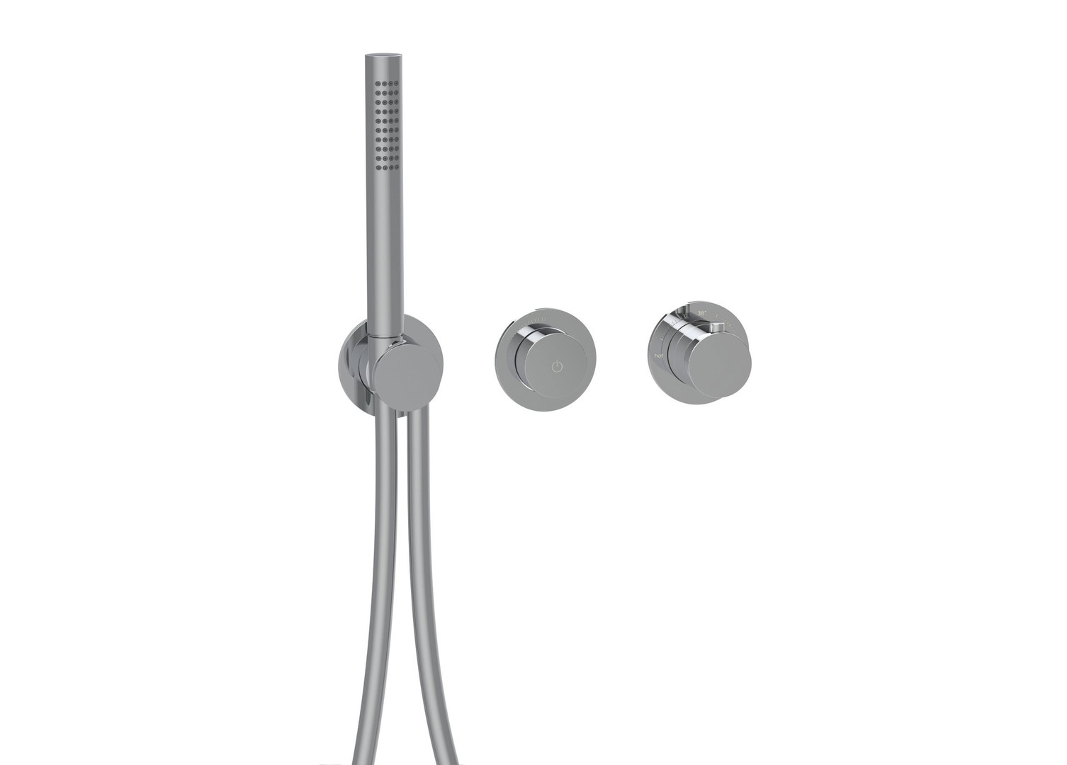 LOGIC-Thermostatkartusche, Heißwassersperre 38°C, Start + Stop des Wasserflusses durch drücken des PUSH Mengenventils, stufenlose Mengenregulierung, MODUL7 Brauseschlauch 150 cm mit Drehkonus, eigensicher gegen Rückfließen, bestehend aus Thermostat, PUSH Mengenventil, Brausehalterset, Ausführung chrom/PVD Gold/schwarz matt mit Messing Stabhandbrause, Messing Bediengriffen und Messing Modulblenden Ø 70 mm, Ausführung Edelstahl mit Edelstahl Stabhandbrause, Edelstahl Bediengriffen und Edelstahl Modulblenden Ø 70 mm