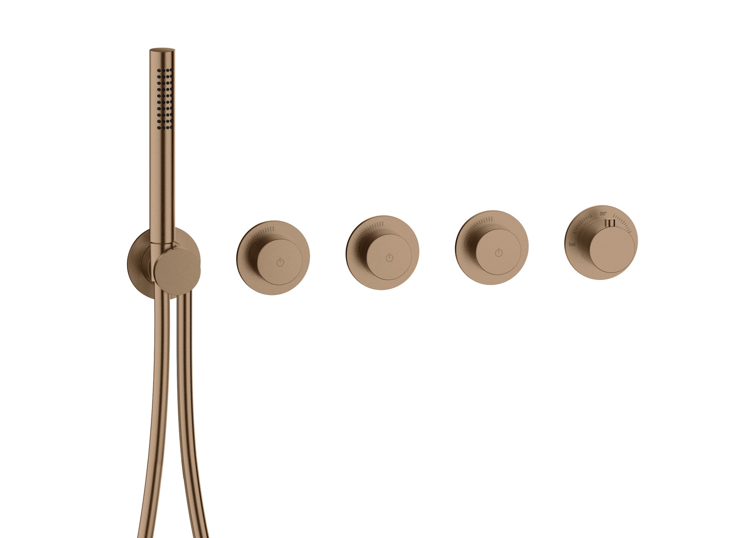Herzbach Fertigmontageset MODUL7 PUSH Thermostat, mit Stabhandbrause, 3 Verbraucher, copper steel