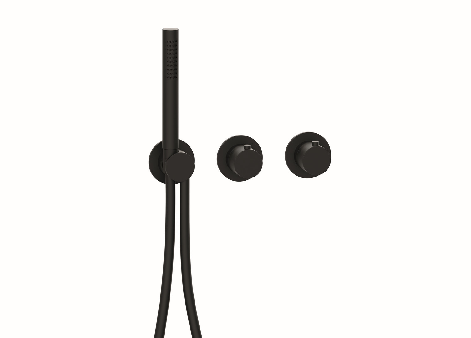 LOGIC-Thermostatkartusche, Heißwassersperre 38°C, stufenlose Mengenregulierung, MODUL7 Brauseschlauch 150 cm mit Drehkonus, eigensicher gegen Rückfließen, bestehend aus Thermostat, Mengenventil, Brausehalterset, Ausführung chrom/PVD Gold/schwarz matt mit Messing Stabhandbrause, Messing Bediengriffen und Messing Modulblenden Ø 70 mm, Ausführung Edelstahl und Edelstahl PVD mit Edelstahl Stabhandbrause, Edelstahl Bediengriffen und Edelstahl Modulblenden Ø 70 mm
