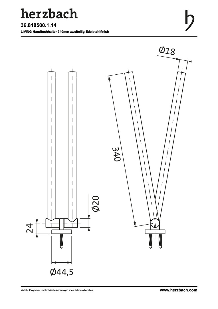 Herzbach Handtuchhalter Living zweiteilig, 340mm, Wandmontage, Edelstahlfinish