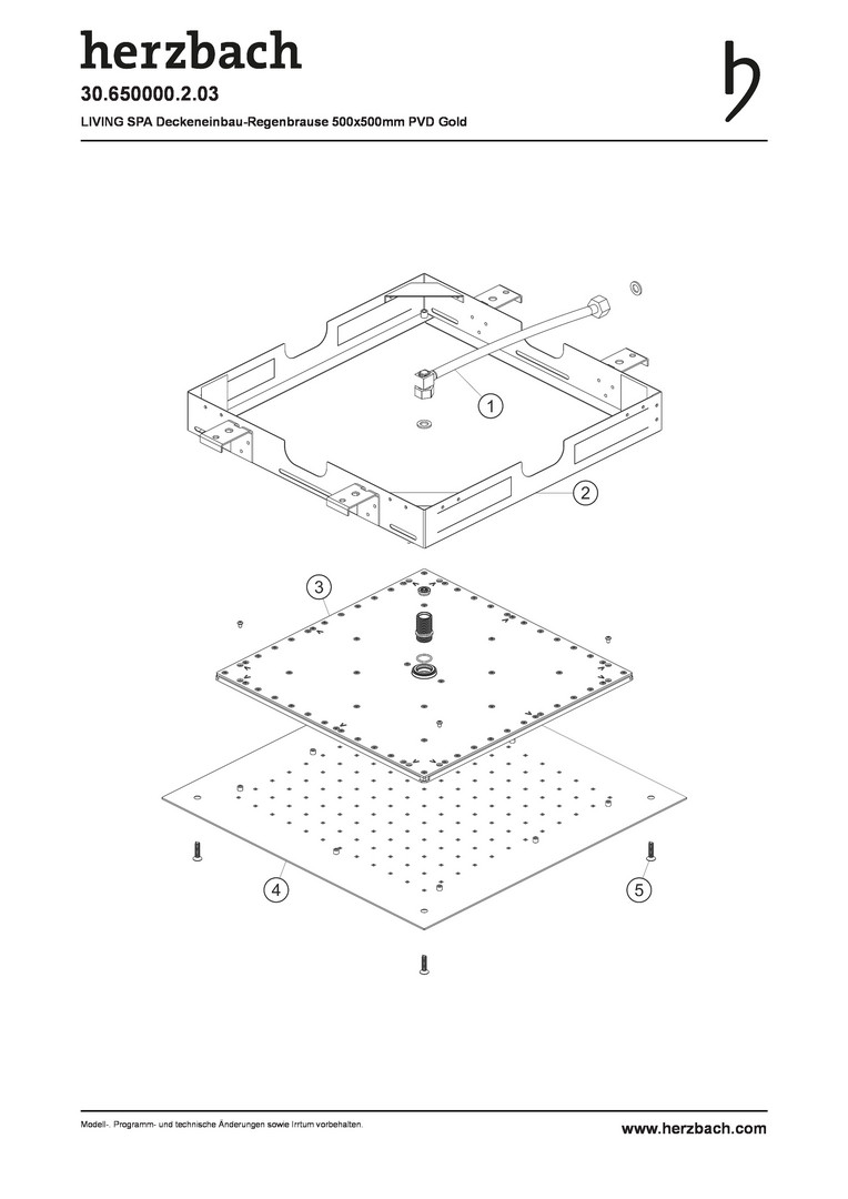 Herzbach Regenbrause Living Spa 500 x 500 mm, Deckeneinbau, 1-strahlig, PVD Gold K20727706