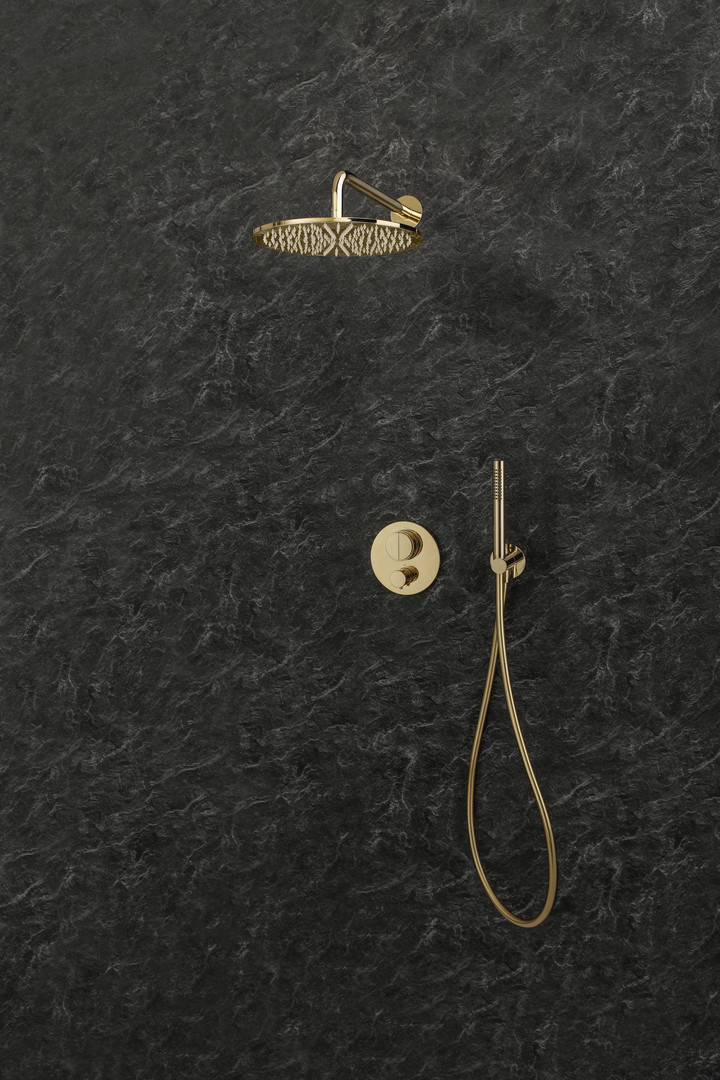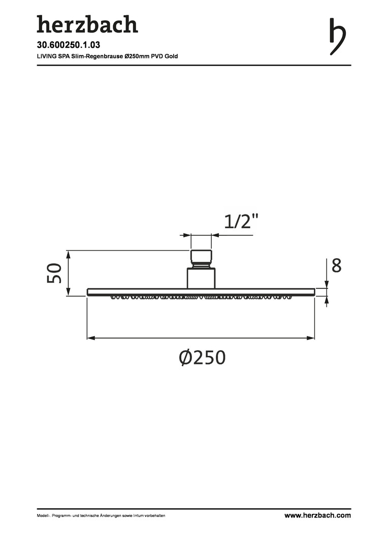Herzbach Regenbrause Living Spa slim round Ø 250 mm, PVD-gold, für Decken-/Wandarm
