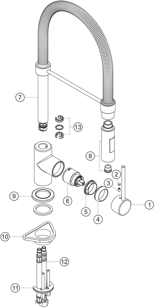mit schwenkbarem Spiralfederauslauf 360°, ausklinkbarer Brausekopf mit 2 Strahlfunktionen, LOGIC-SoftEmotion-Keramikkartusche, mit einstellbarer Temperaturbegrenzung, LOGIC-Fix-Befestigung, Anschlussschläuche, DVGW zertifiziert