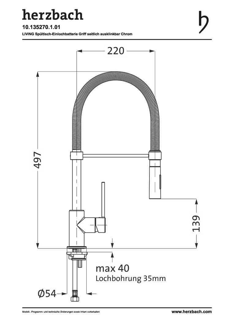 Herzbach Spültisch-Einhebelmischer Living Spiralfederauslauf schwenkbar, chrom