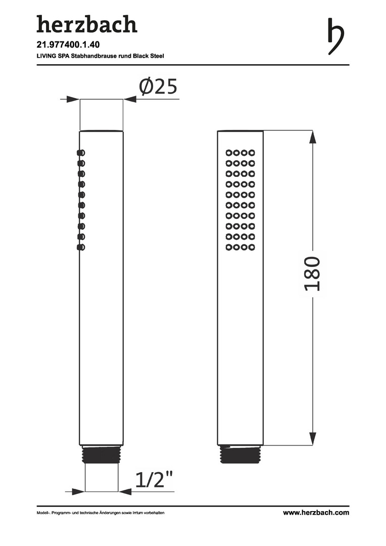 Herzbach Stabhandbrause Living Spa round black steel