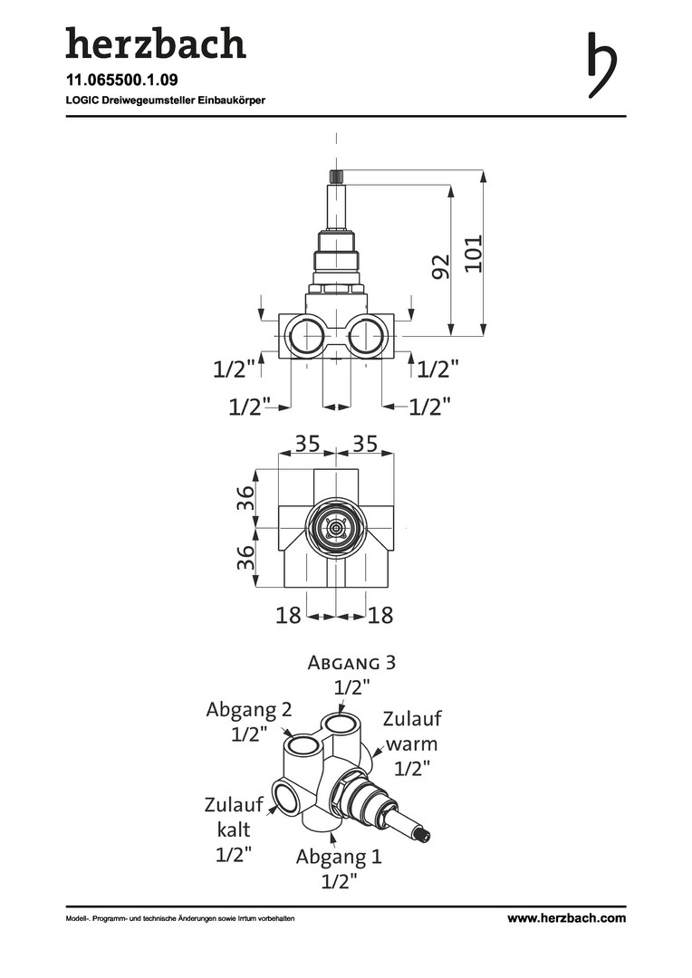 Herzbach UP-3-Wege-Umstellung Logic 1/2", für Rohmontage