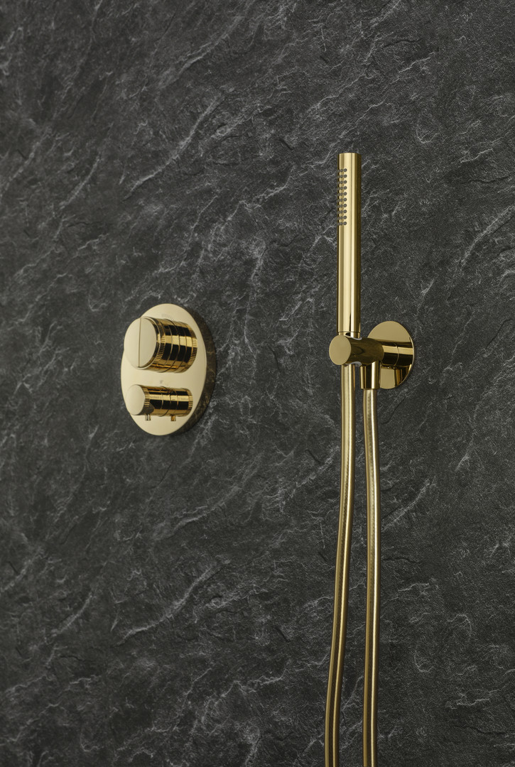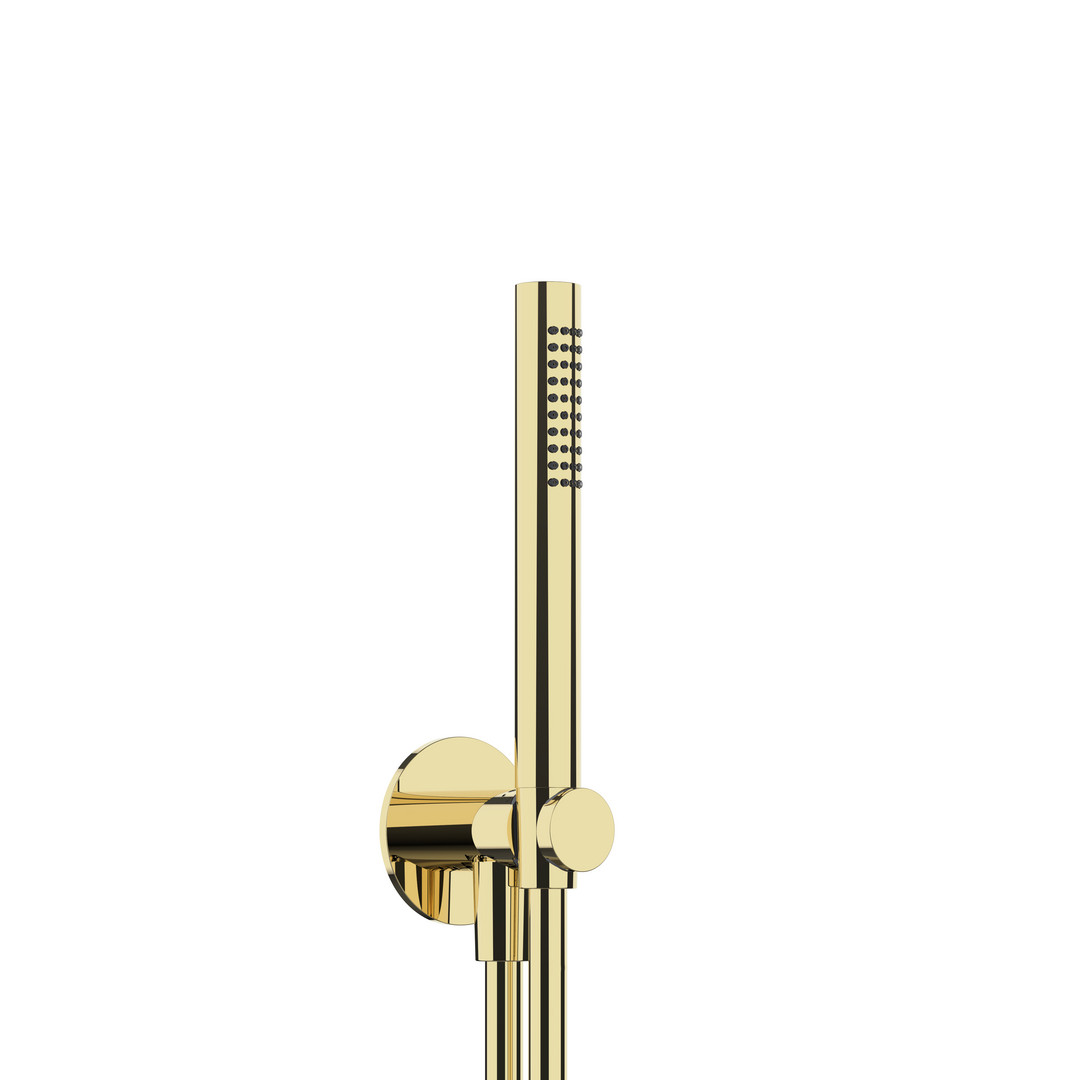 Herzbach Wannenset Living Spa round Konushalter, Brauseanschlussbogen, Stabbrause, Brauseschlauch, PVD gold