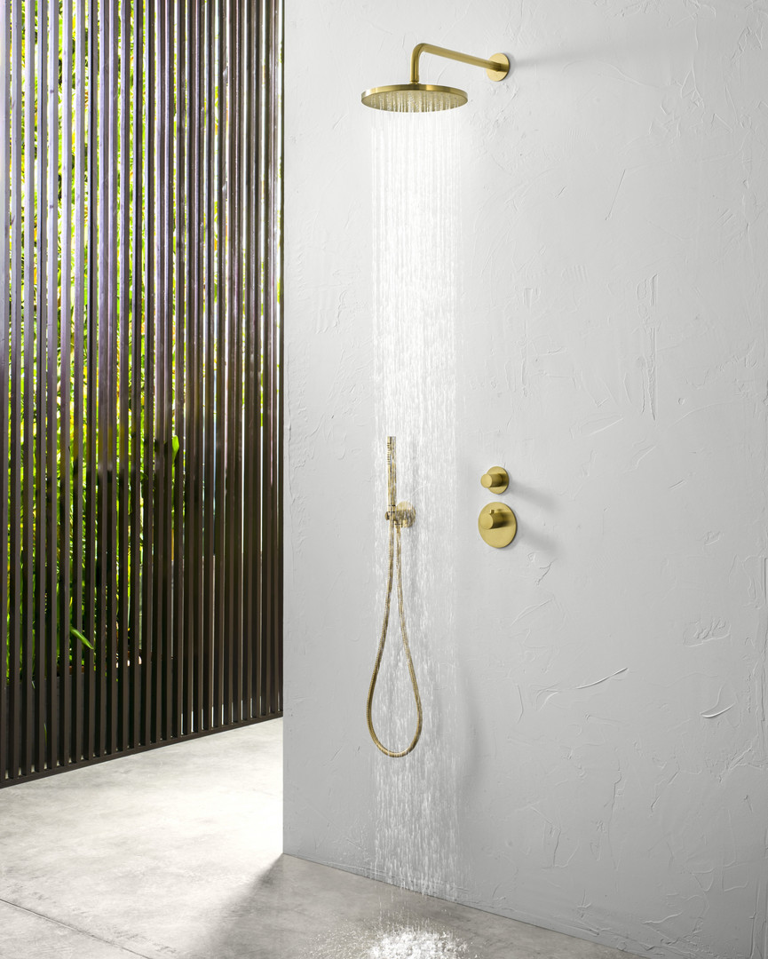 Herzbach Wannenset Living Spa seven round Brauseanschlussbogen, Stabbrause, Brauseschlauch 1250mm, brass steel