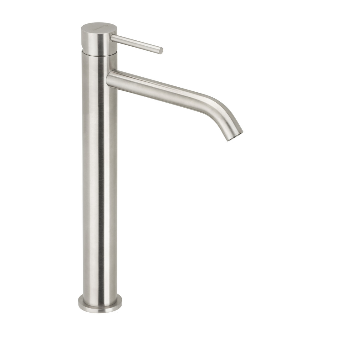 Herzbach Waschtisch-Einhebelmischer Deep IX XL-Size, erhöhter Schaft, ohne Ablaufgarnitur, Edelstahl gebürstet