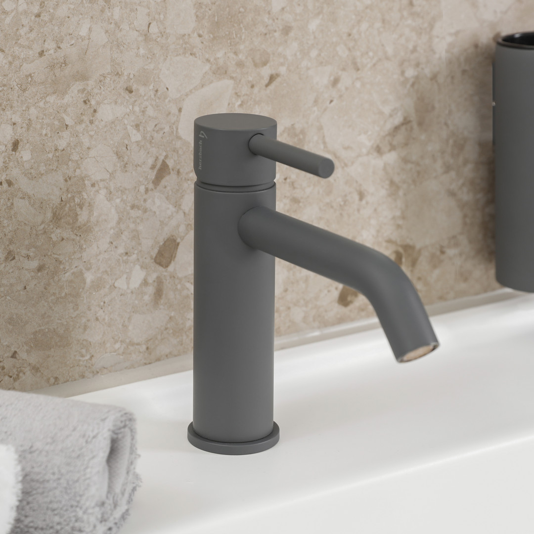 Herzbach Waschtisch-Einhebelmischer Deep M-Size, ohne Ablaufgarnitur, 150 mm, grau matt