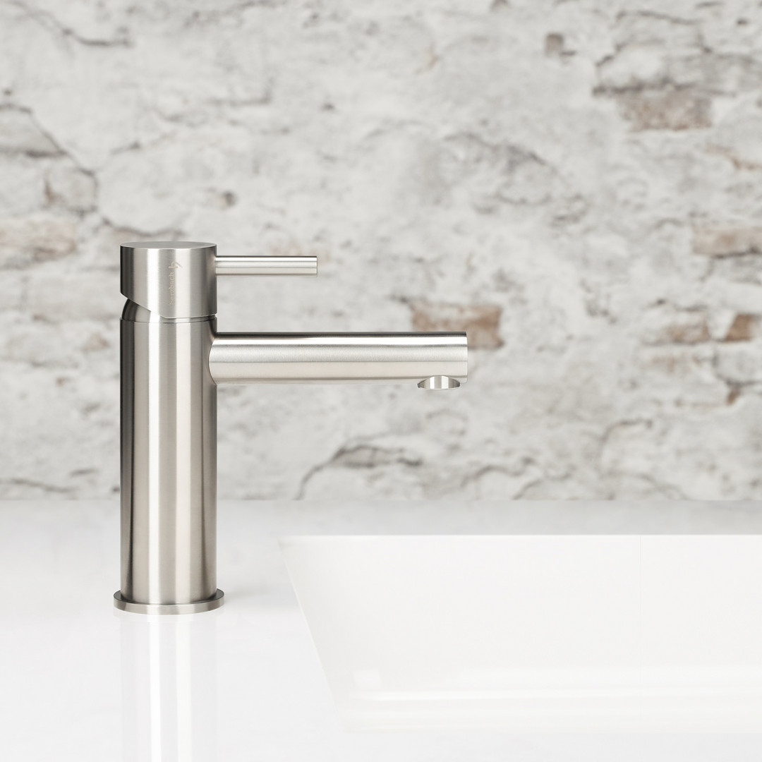 Herzbach Waschtisch-Einhebelmischer Design iX M-Size, mit Ablaufgarnitur, Edelstahl gebürstet
