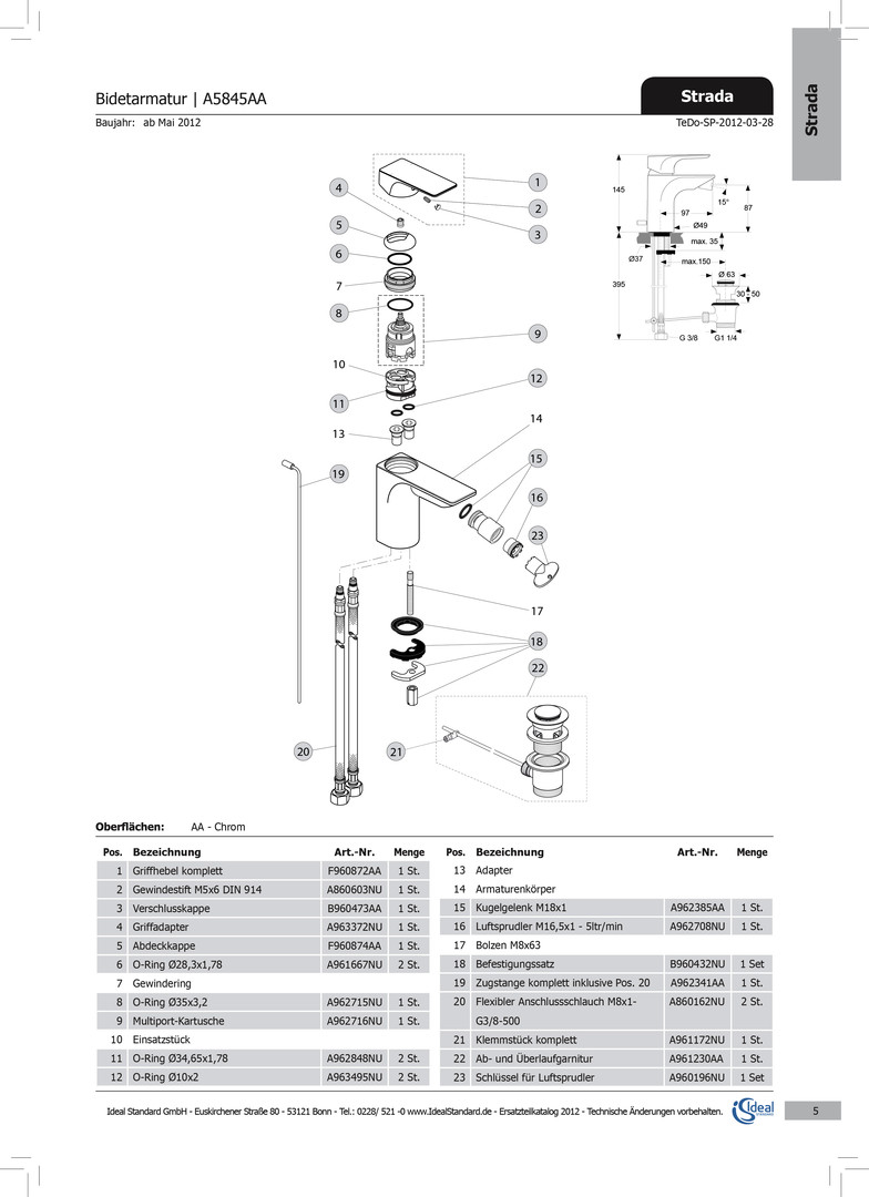 | Produktklasse | Zubehör/Ersatzteile für Sanitärarmaturen |