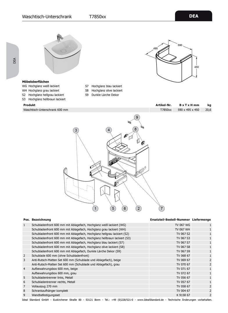 Ideal Standard Antirutschma-Set DEA, für Waschtischunterschrank Breite: 600mm, Grau