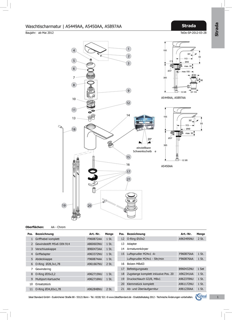 | Produktklasse | Bedienelement für Sanitärarmaturen |