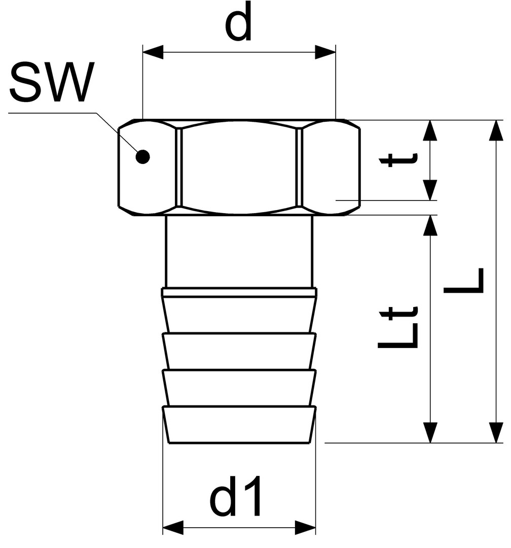 JS 2/3 Verschraubung mit Sechskantüberwurfmutter, Innengewinde 1/2", Tülle 5/8", Messing